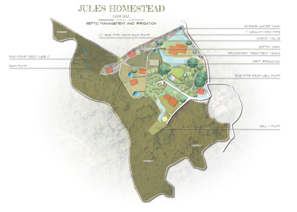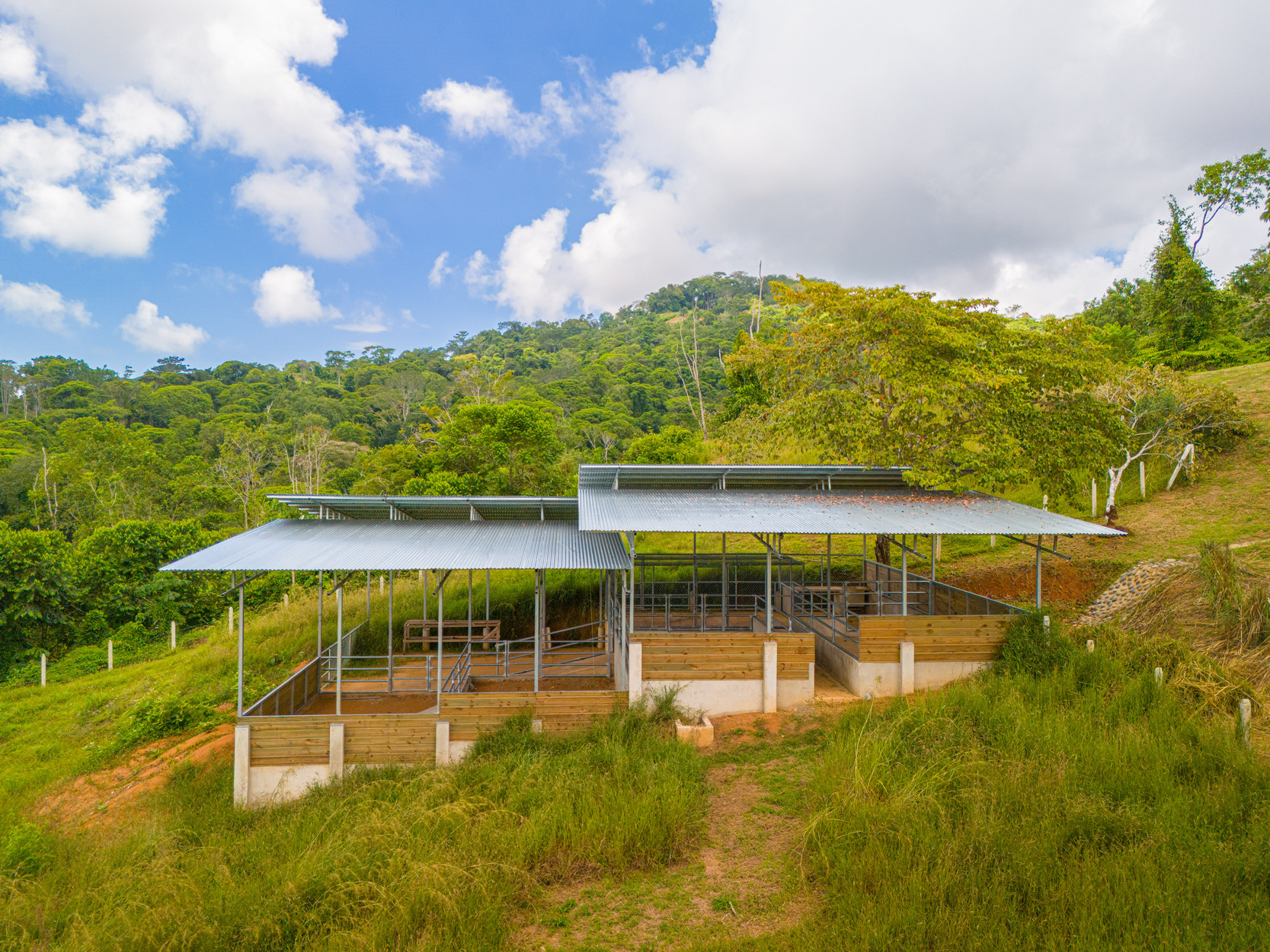 Explore the thoughtful planning with a permaculture master plan; erosion control measures, and a main gate to the lower farm. Along the road, a fenced property line ensures security with bamboo planted for additional privacy and solar ‘street’ lamps installed throughout the property. Through the jungle find a creek adorned with multiple waterfalls and small swimming pools that grace ¾ of the property. Three house plans, including the main concrete and steel house on the top building lot, await your final touches. The groundwork is laid – your dream home and more are ready to take shape!